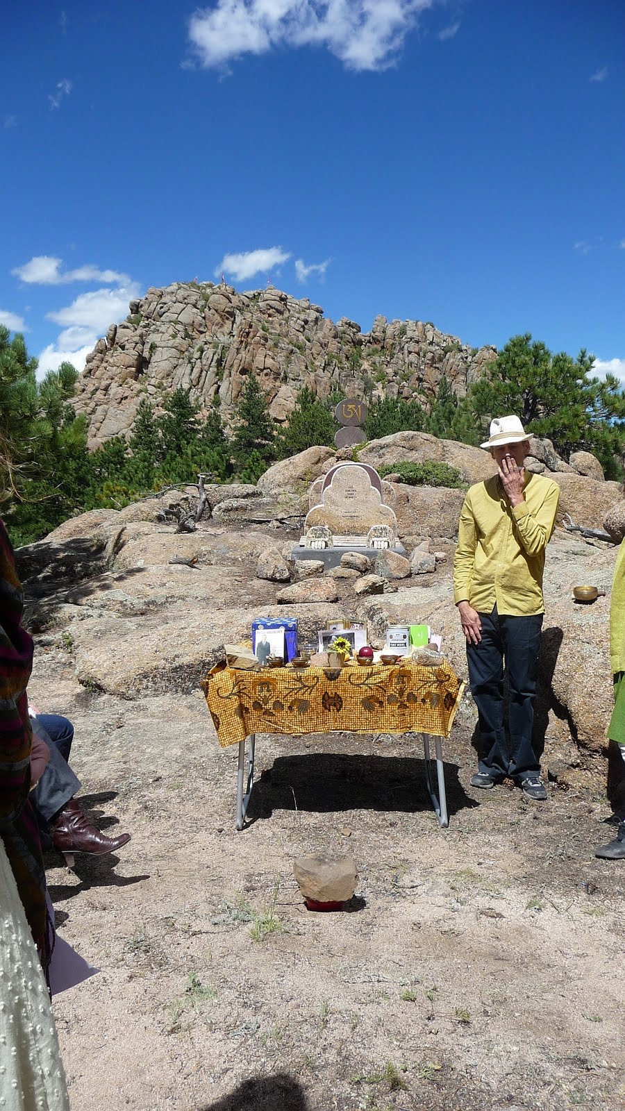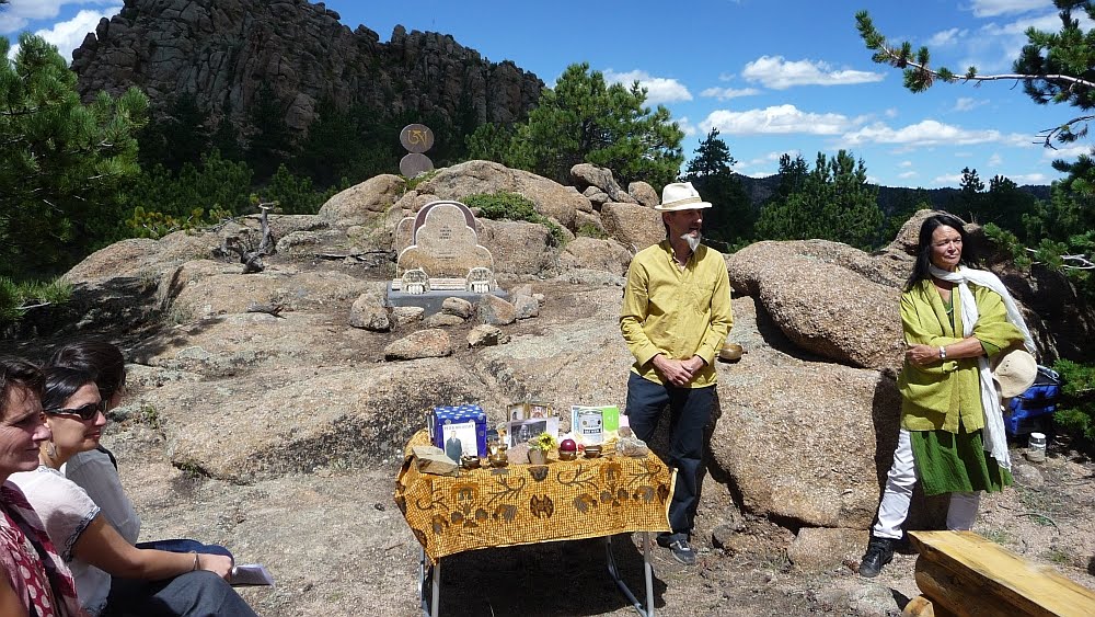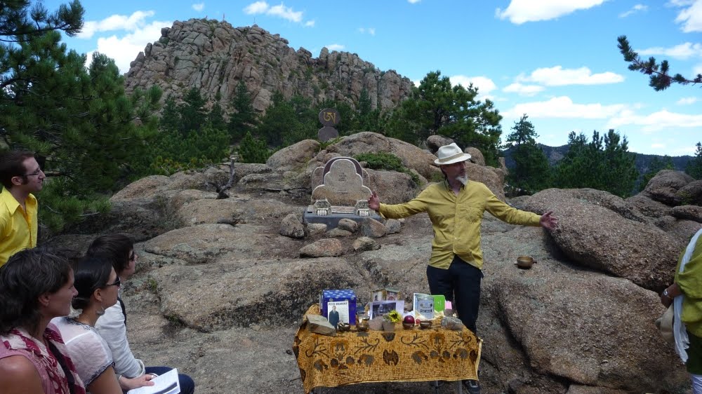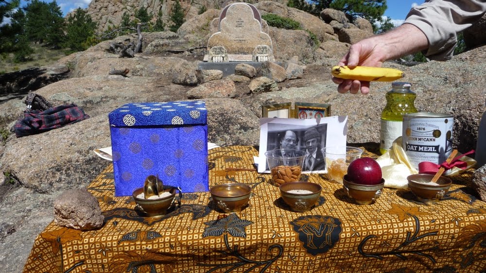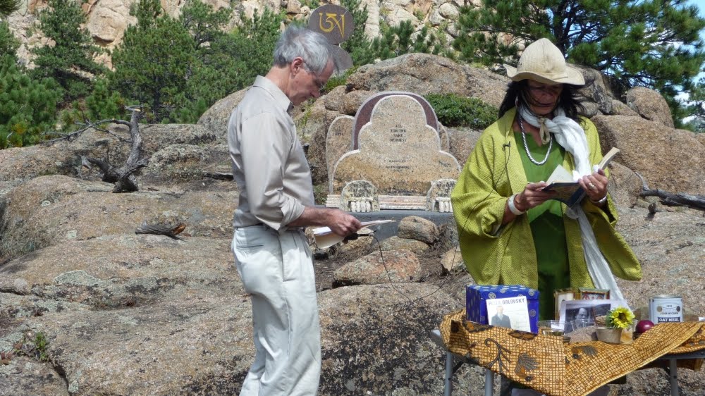 It was Allen’s wish that a third of his ashes be buried in his family plot in Elizabeth, New Jersey, one third go to Jewel Heart, Gelek Rinpoche’s Sangha, and one third to the Shambhala Sangha to be brought to Shambhala Mountain Center near Red Feather Lakes, Colorado. For quite some time we’d been planning appropriate placement for them with the help of poets Reed Bye, Anne Waldman and the staff at SMC, especially with artist Joshua Mulder, but couldn’t quite seem to coordinate something. It took Peter Orlovsky passing away last spring and his similar wish to have his ashes brought to SMC to finally settle the issue. On Sunday August 28 we conducted the traditional Mahayana Buddhist Sukhavati ceremony of burning images of the deceased and aspiration prayers from from the Tibetan Book of the Dead and the Prajnaparamita Sutra as well as a group reading of Shelley’s “Ode to the West Wind.” Here are some images from that day.